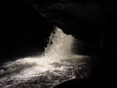 I've been behind falls and I've stood under falls but I don't think I've ever been under or behind one that was quite so active. Esther was brave enough to take her camera inside a ziplock bag around to the back of the falls were there was a shelf of very shallow water. The next few pictures are from her blog entry about the same hike.
